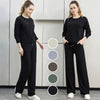 STYLISH SET : This set includes a long-sleeved, round-neck top matched with wide-leg pants, combining fashion and relaxation. The top can be worn alone or under a jacket, offering both elegance and versatility.